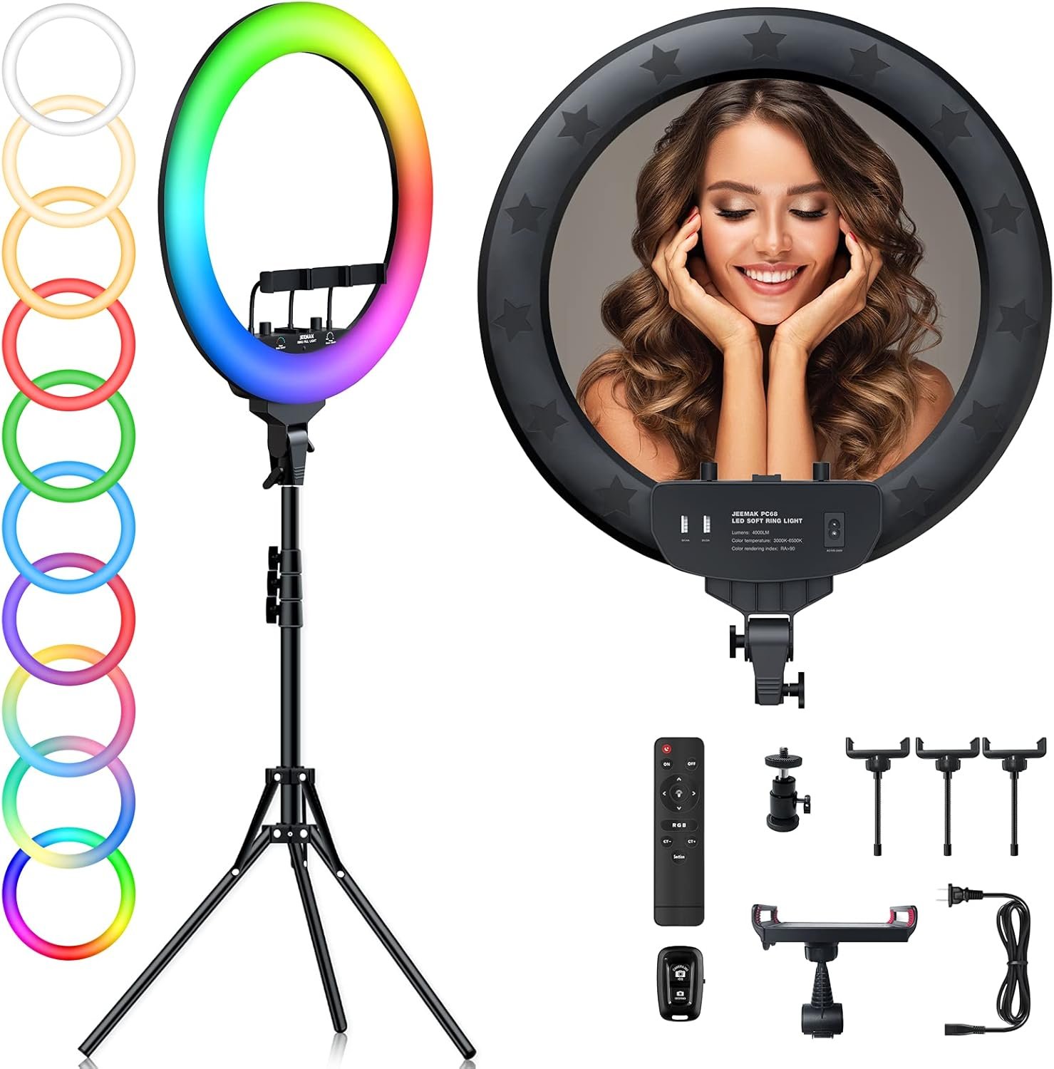 The 22-Inch RGB Ring Light delivers professional-quality lighting with creative RGB effects in a compact and easy-to-use design. Perfect for content creation, video calls, and photography, it helps you look better on camera while giving your visuals a colorful, modern edge.